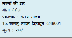 इस तरह से गीता गैरोला के संस्मरणों का संकलन “मल्यो की डार”निष्काषन की विभीषिका से कहीं आगे बढ़कर मूल्यों को पहचानने- सहेजने का उपक्रम बन जाता है. यही इस संकलन की सबसे बड़ी उपलब्धि है. ____