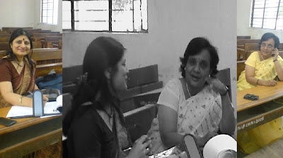बड़े स्नेह से अभिवादन का उत्तर देते हुए एक अन्य कक्ष में चलने का आग्रह किया. यह हिंदी विभाग की कोई क्लास थी. पहले कुछ सामान्य बातें हुईं .. नयी शिक्षा प्रणाली, शिक्षण में होने वाली क्रान्ति, अंतरजाल का शिक्षा में प्रयोग ..आदि