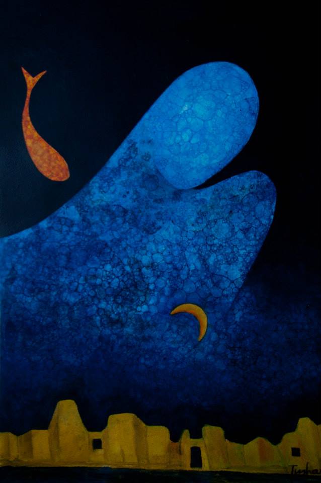जिसकी तिरछी लकीरें कैनवास के बाहर मिलकर