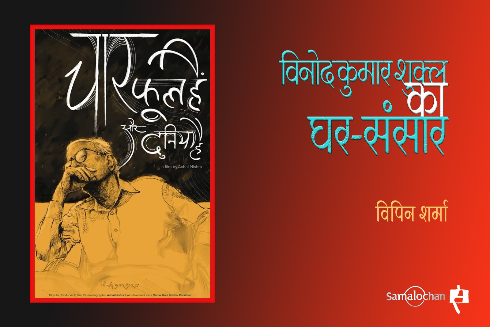 अचल मिश्रा द्वारा 2024 में निर्देशित वृत्तचित्र ‘चार फूल हैं और दुनिया है’ विनोद कुमार शुक्ल के जीवन और लेखन के उस अंतरंग क्षेत्र में प्रवेश करता है जहाँ घर, परिवार और रोज़मर्रा की साधारणताएँ उनकी रचनात्मक प्रक्रिया से अविच्छिन्न रूप से जुड़ी दिखाई देती हैं. यह फ़िल्म किसी साहित्यिक व्यक्तित्व को स्मारक में बदलने के बजाय उसकी सृजनशीलता के घरेलू, लगभग अदृश्य स्रोतों को उजागर करती है. इस वृत्तचित्र के बहाने विपिन शर्मा, विनोद कुमार शुक्ल को याद कर रहे हैं. प्रस्तुत है.