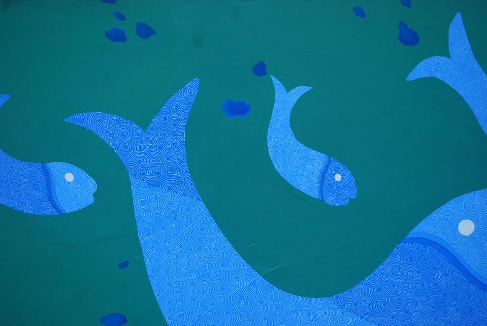 जब पोखर बन ही गया है तो उसमें मछलियाँ भी हैं. यहाँ सूरज की रोशनी नहीं पहुँचती है, बल्कि कभी नहीं पहुँची है. यहाँ ये मछलियाँ अंधी हैं, इनकी आँखें नहीं हैं, जिसकी उन्हें ज़रूरत नहीं है, क्योंकि कोई रोशनी नहीं है. ये मछलियाँ बिना देखे मर जाती हैं, जबकि बाहर की मछलियाँ, जो सूरज की रोशनी में हैं, कभी सोती नहीं, उनकी आँखें बंद नहीं होतीं. जनगढ़ ने अन्तिम चित्र के पहले का चित्र भी मछलियों का ही बनाया और वे आँखों वाली मछलियाँ हैं और हाँ, जनगढ़ ने इन मछलियों के होठों पर लिपस्टिक भी लगाई है. सुर्ख लाल रंग की लिपस्टिक.