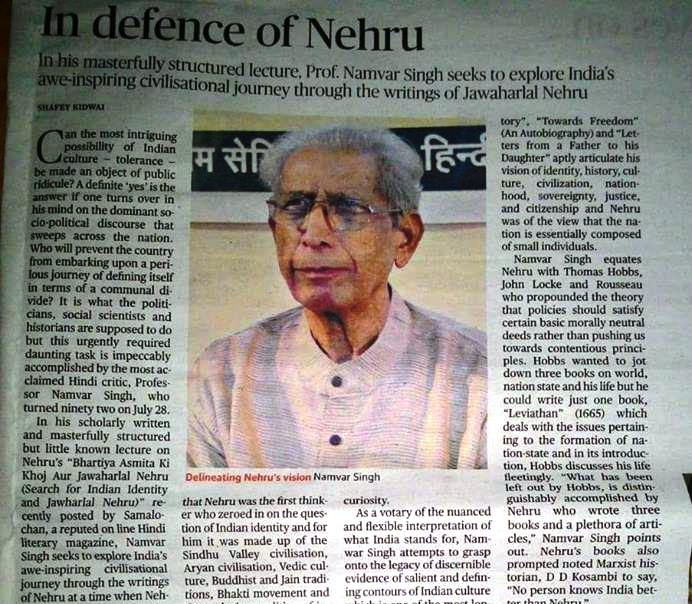 शफी किदवई जी ने नामवर जी के बारे में जो लिखा है उससे शत-प्रतिशत सहमत होते हुए भी लगता है ,कुछ कम लिखा है नामवर जी का पूरा व्याख्यान सांस रोक एकाग्रता से पढ़ा उन्होंने नेहरू जी को उनकी मुमकिन समग्रता में पेश किया है नामवर जी स्वयं भी अपनी सारी मुमकिन समग्रता में यहां अभिव्यक्त हुए हैं उनका अध्ययन चिंतन मनन सब यहां एक साथ उद्घाटित हो जाता है उनकी स्मृति में उन्हें प्रणाम, नेहरू जी को फिर से जानने समझने का अवसर मिला इसके लिए शफी किदवई नंद भारद्वाज और आपको धन्यवाद 🙏🏻