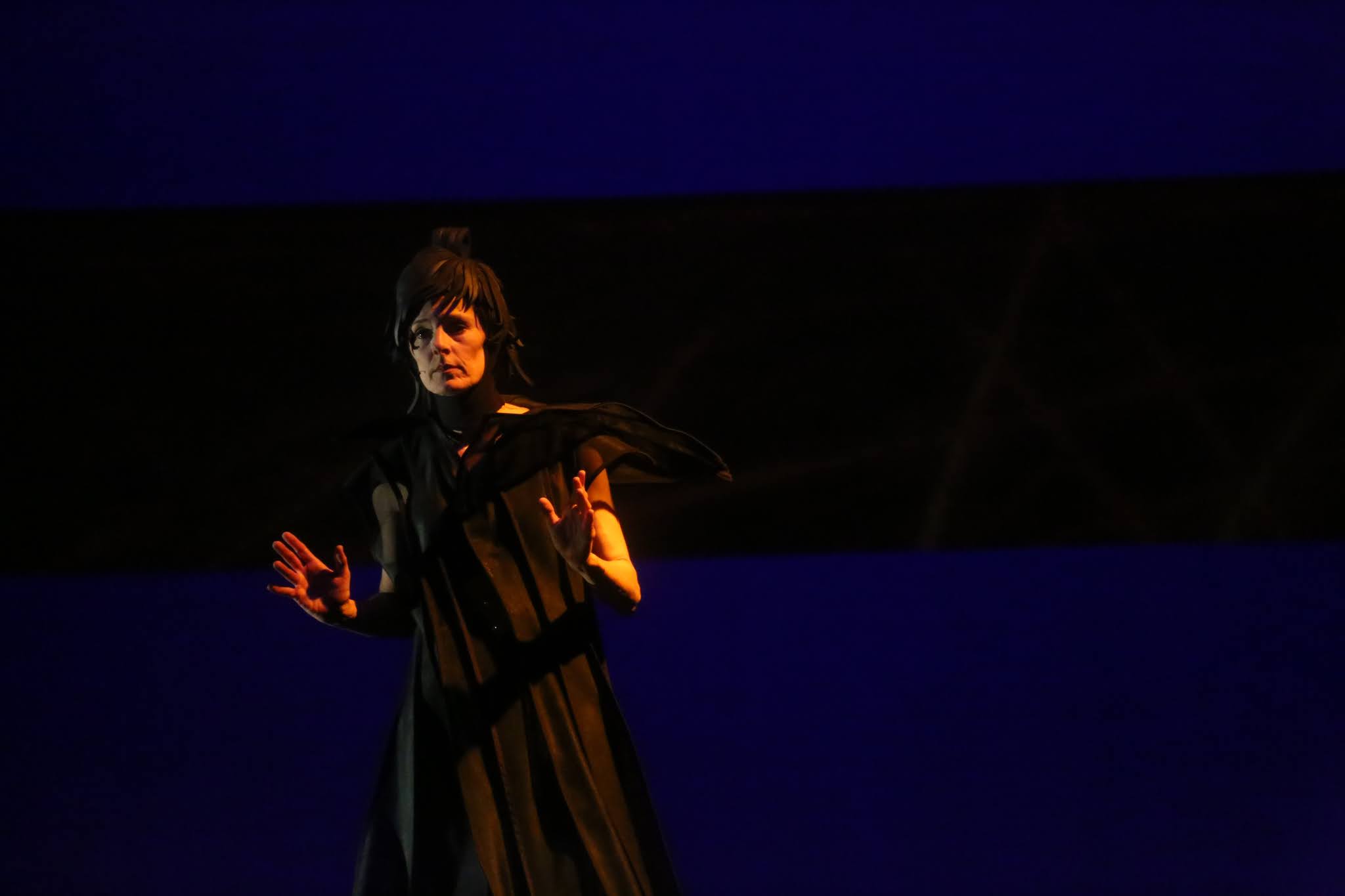 नृत्य कुछ-कुछ पुरानी पांडुलिपियों के मन्त्र जैसी लम्बी आरोह-अवरोह की तरंगित होती पुनरावृति की गायकी से उभरता है